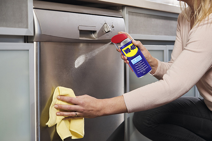 門把、窗框、甚至廚房的油漬,常常清不乾淨。噴上 WD-40,再用布擦拭,就能輕鬆去除陳年污漬,讓金屬表面恢復光亮。